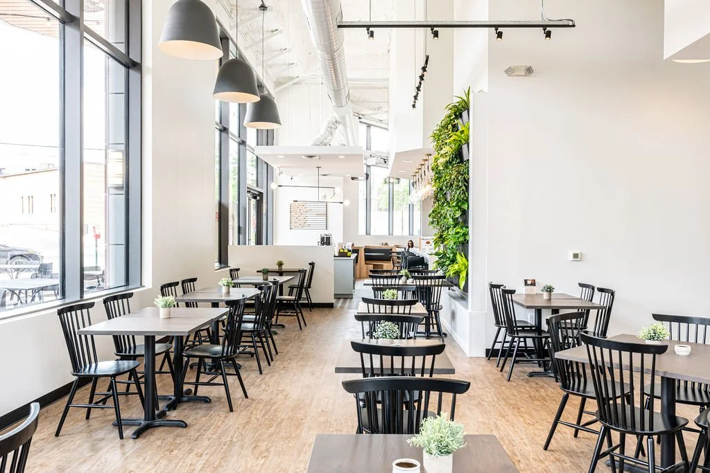 An Asheville institution for delicious breakfast food for over 30 years. The business was taken over by a new owner and expanded to two new locations. The branding was updated and is reflected in the color palette and finishes. The new locations’ design enhances the expanded menu, longer hours, and cocktails now served.