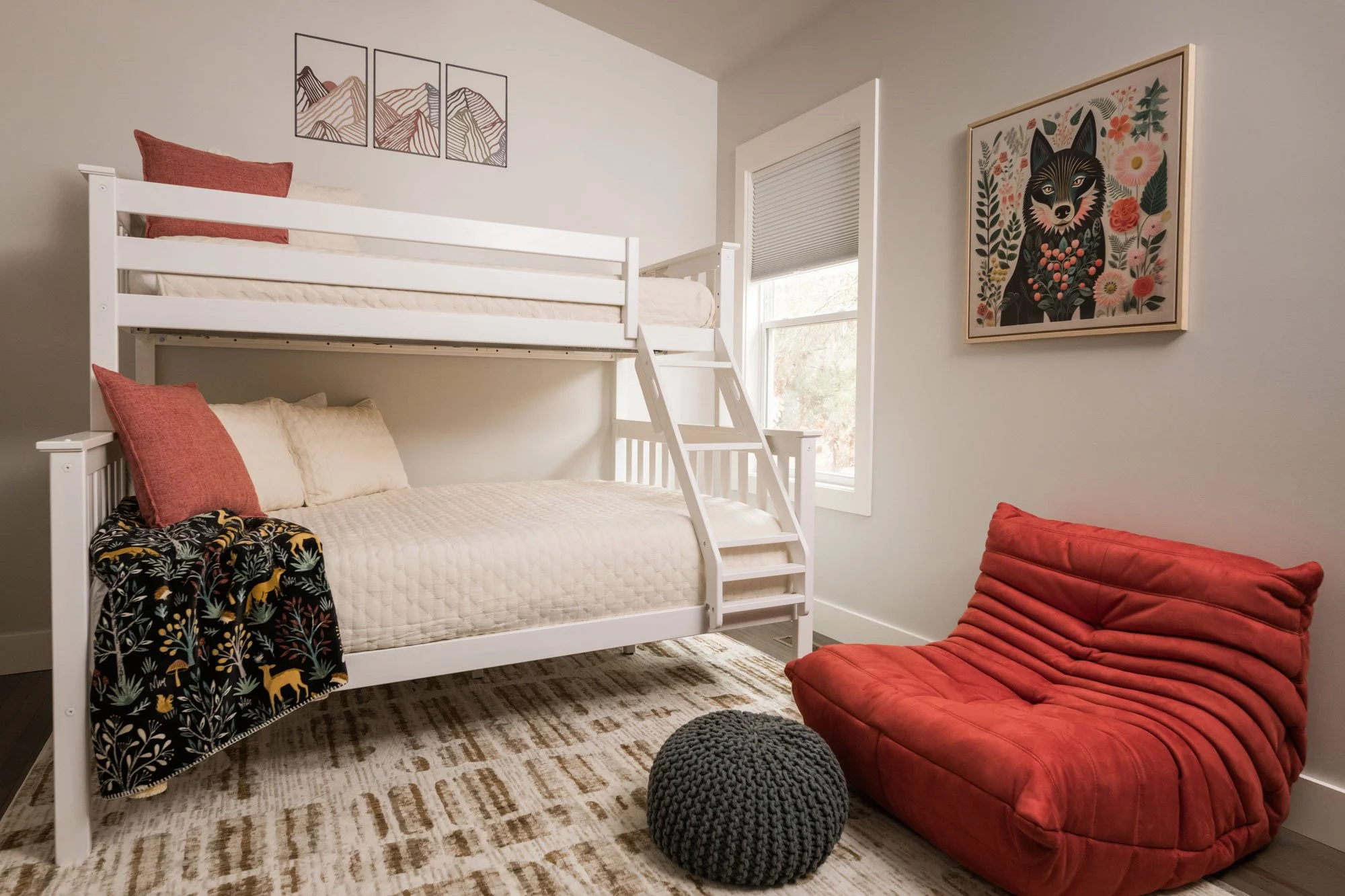 Pine Hill Cottage is a family vacation home designed as a cozy retreat with modern sensibilities. A newly built, 2 unit home was converted to a vacation rental and as a family’s retreat from urban life. The feel is warm, modern, and comfortable.
